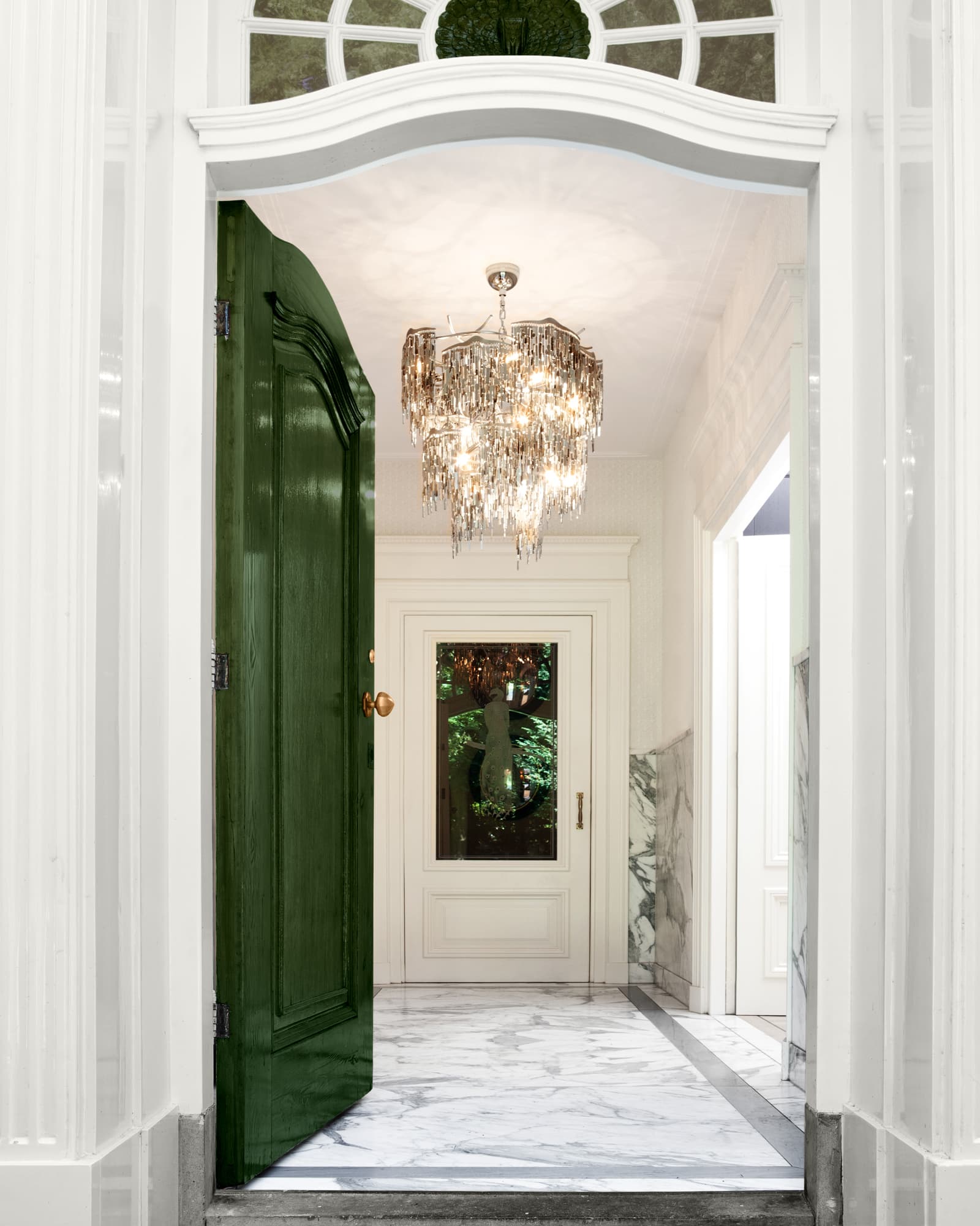 All chandeliers are supplied with a Ø12 cm (4.7 in) diameter dome ceiling cover, Ø16 cm (6.3 in) mounting plate, 170 cm (66.9 in) of chain, and 350 cm (137.8 in) of electrical cable to be woven into the chain. The total drop can be easily adjusted on-site.