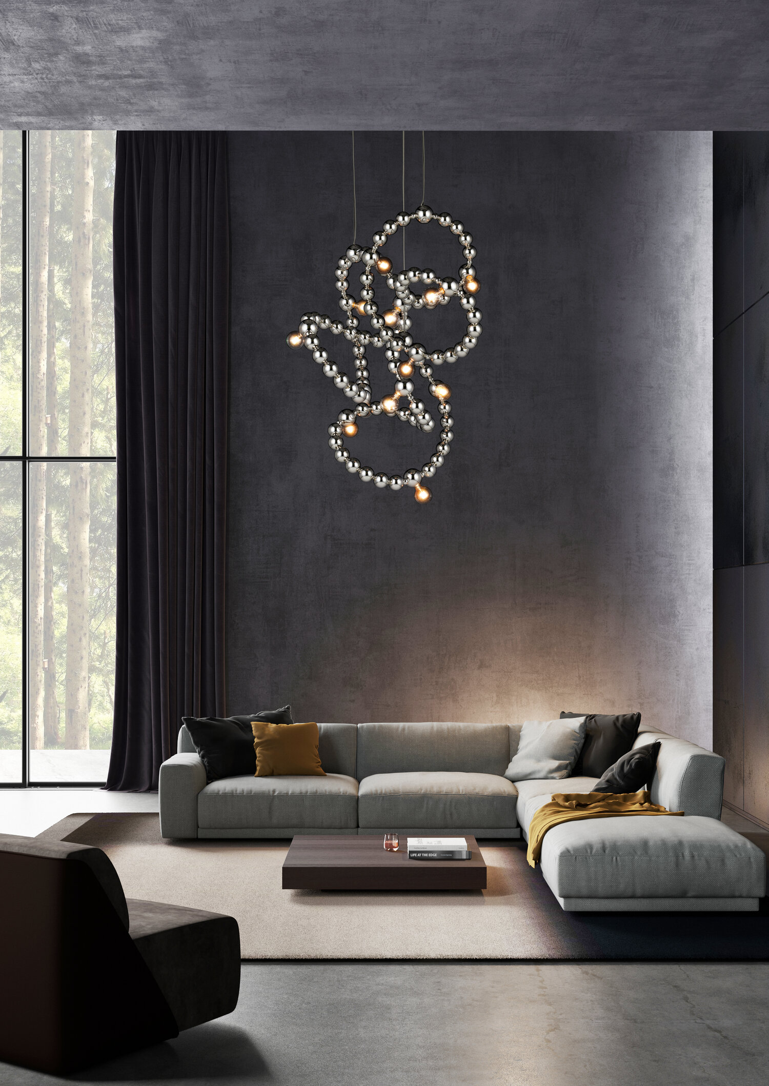 All chandeliers, if ordered as standalone, are supplied with a Ø12 cm (4.7 in) ceiling cover HS-1, 250 cm (98.4 in) of steel cable, and 350 cm (137.8 in) of electric cable. The total drop can be easily adjusted on-site.