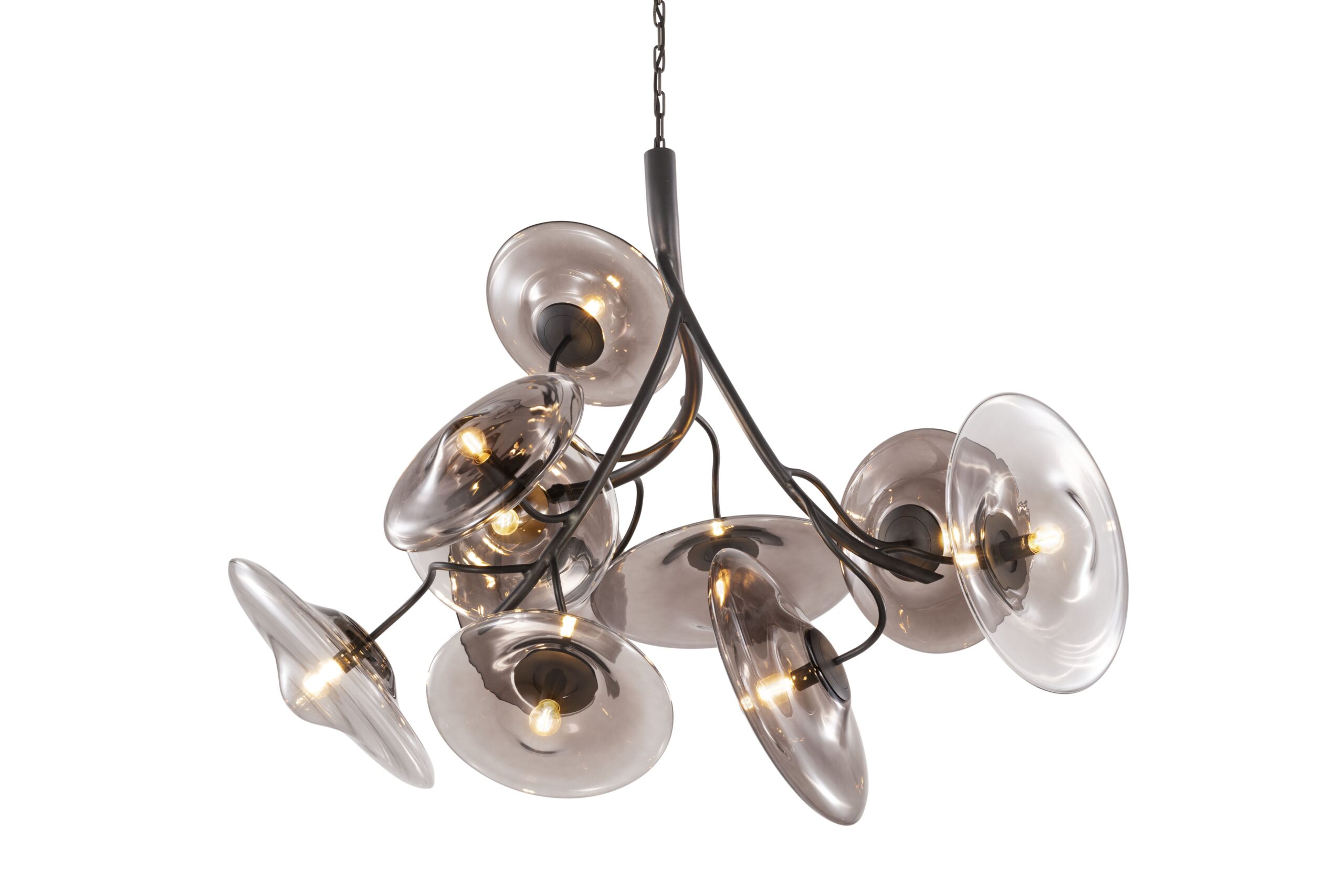 | BLOOBJ130SSF-GLGB | L.130xW.115xH.105 cm | 10x E14 | 34 kg | silver satin, glass in grey shades | |
