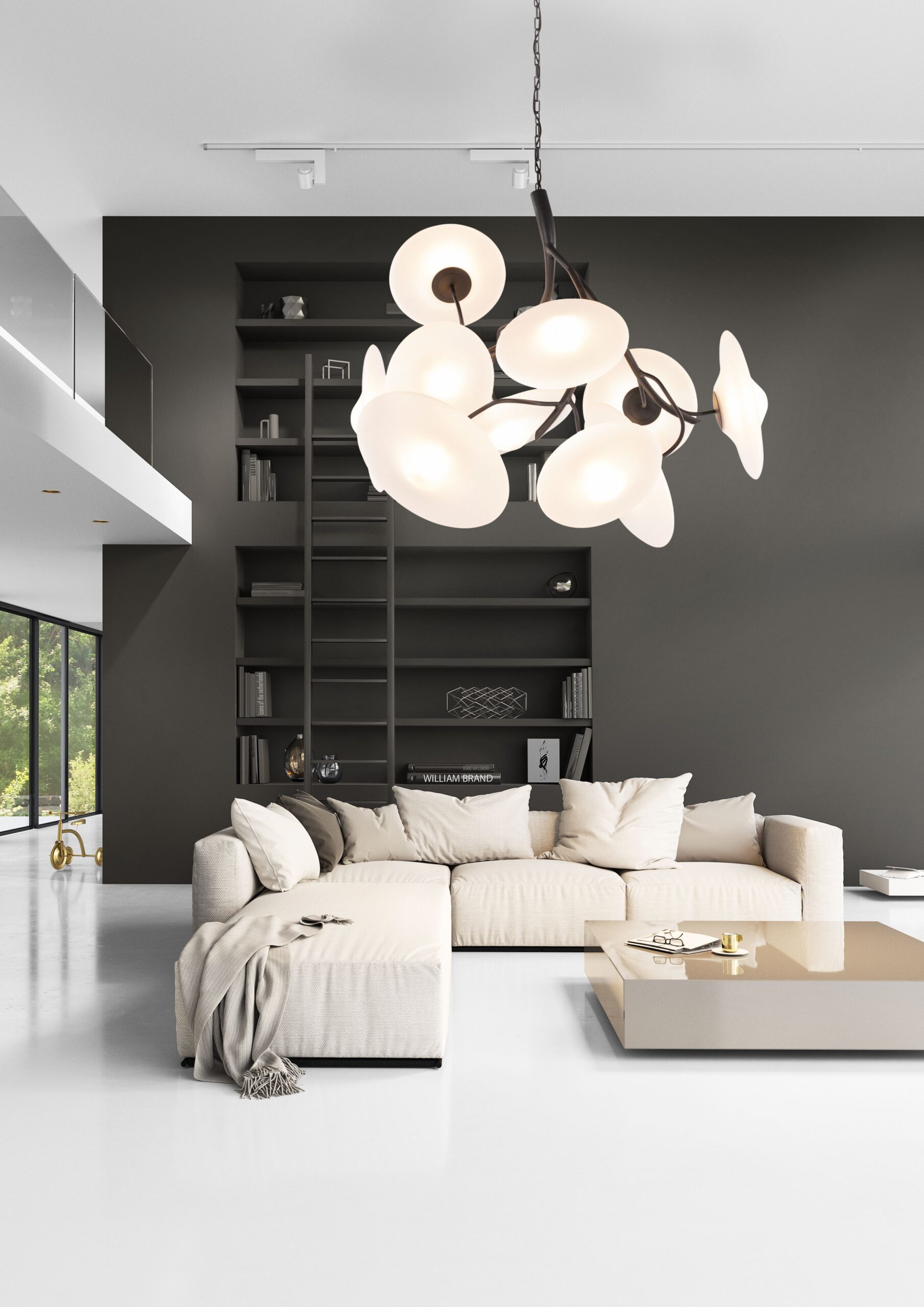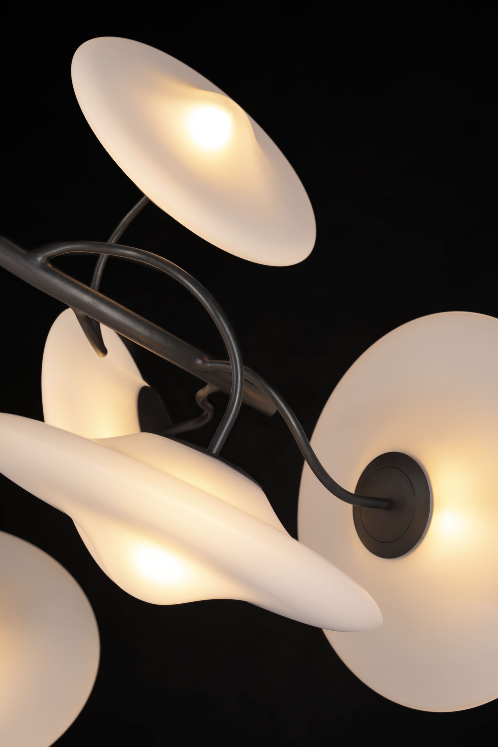 All chandeliers are supplied with a Ø10 cm (3.94 in) cylindrical ceiling cover A-2, Ø16 cm (6.3 in) mounting plate, 170 cm (66.9 in) of chain, and 350 cm (137.8 in) of electrical cable to be woven into the chain. The total drop can be easily adjusted on-site.