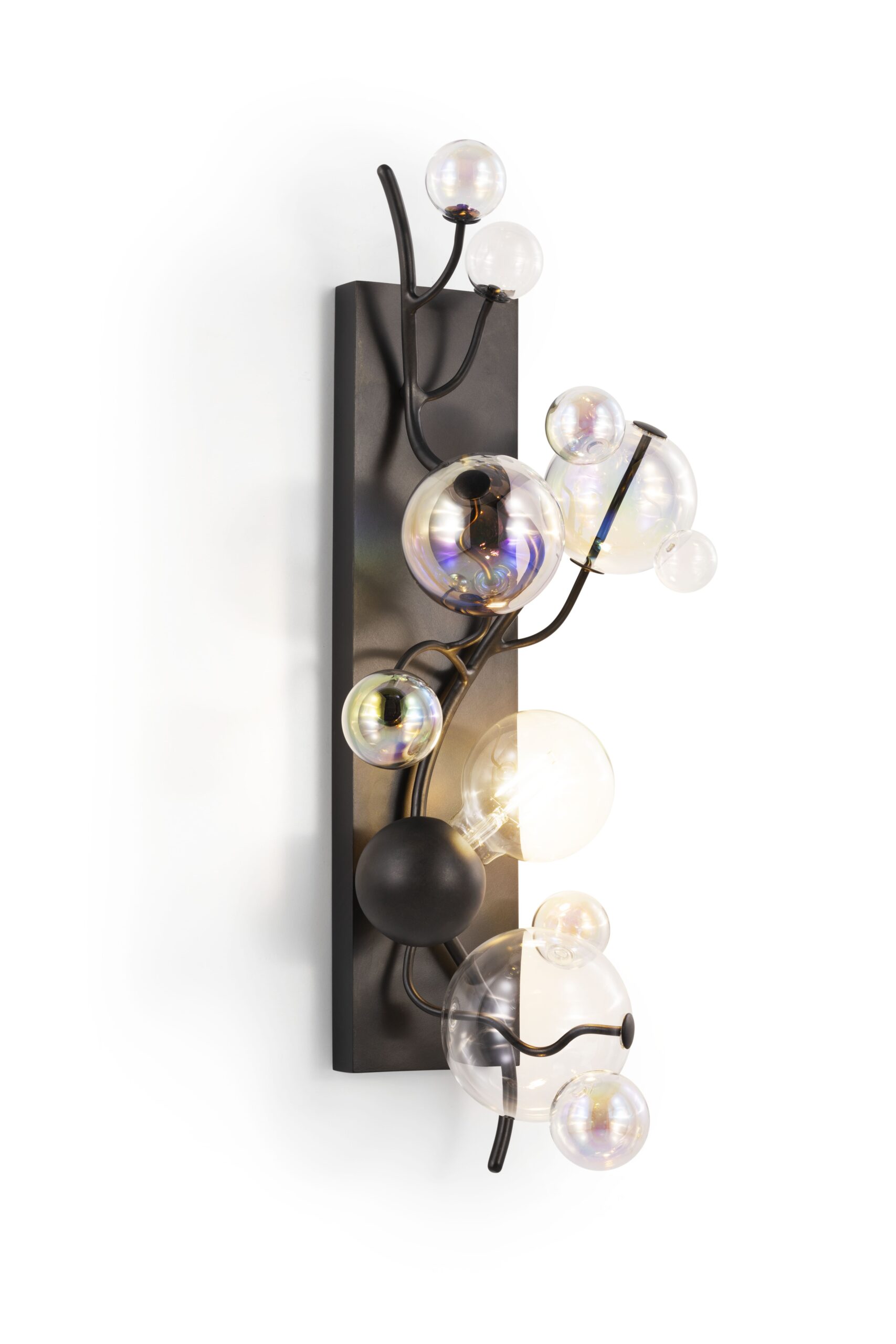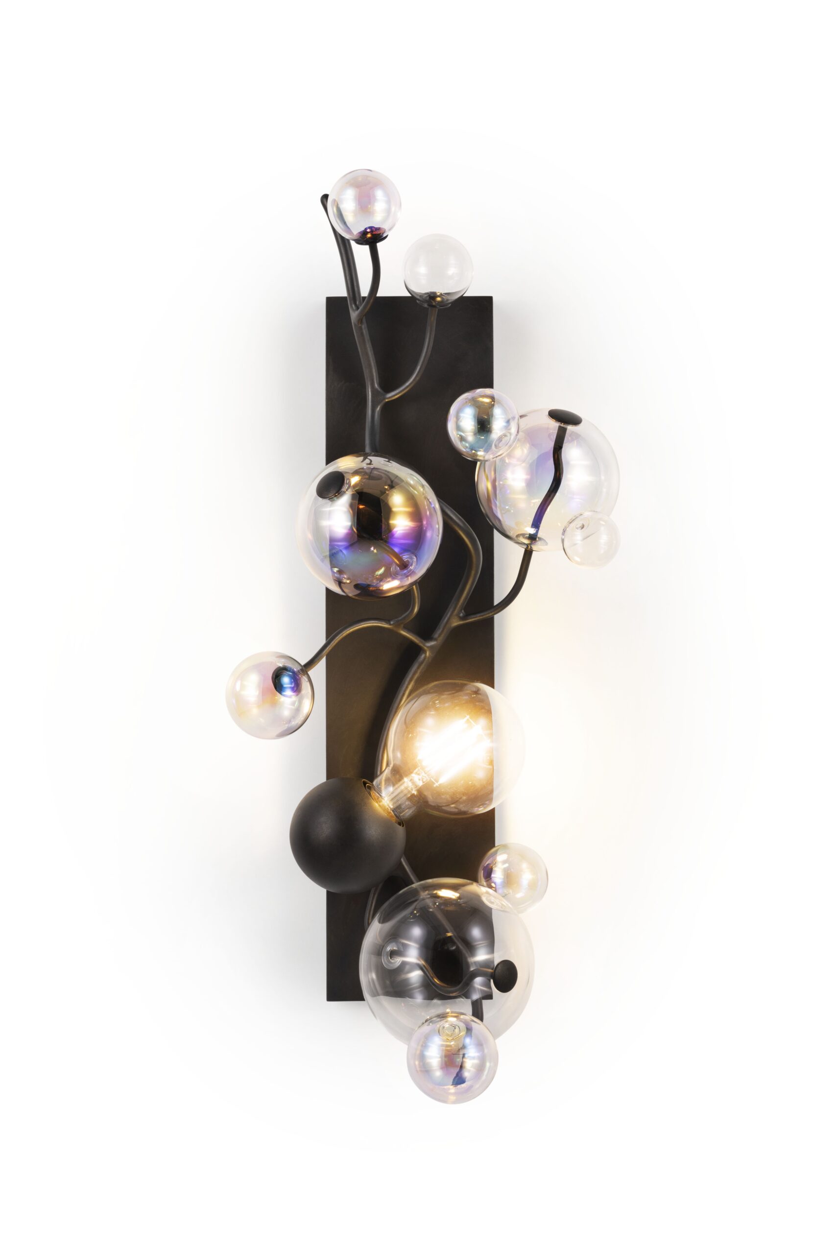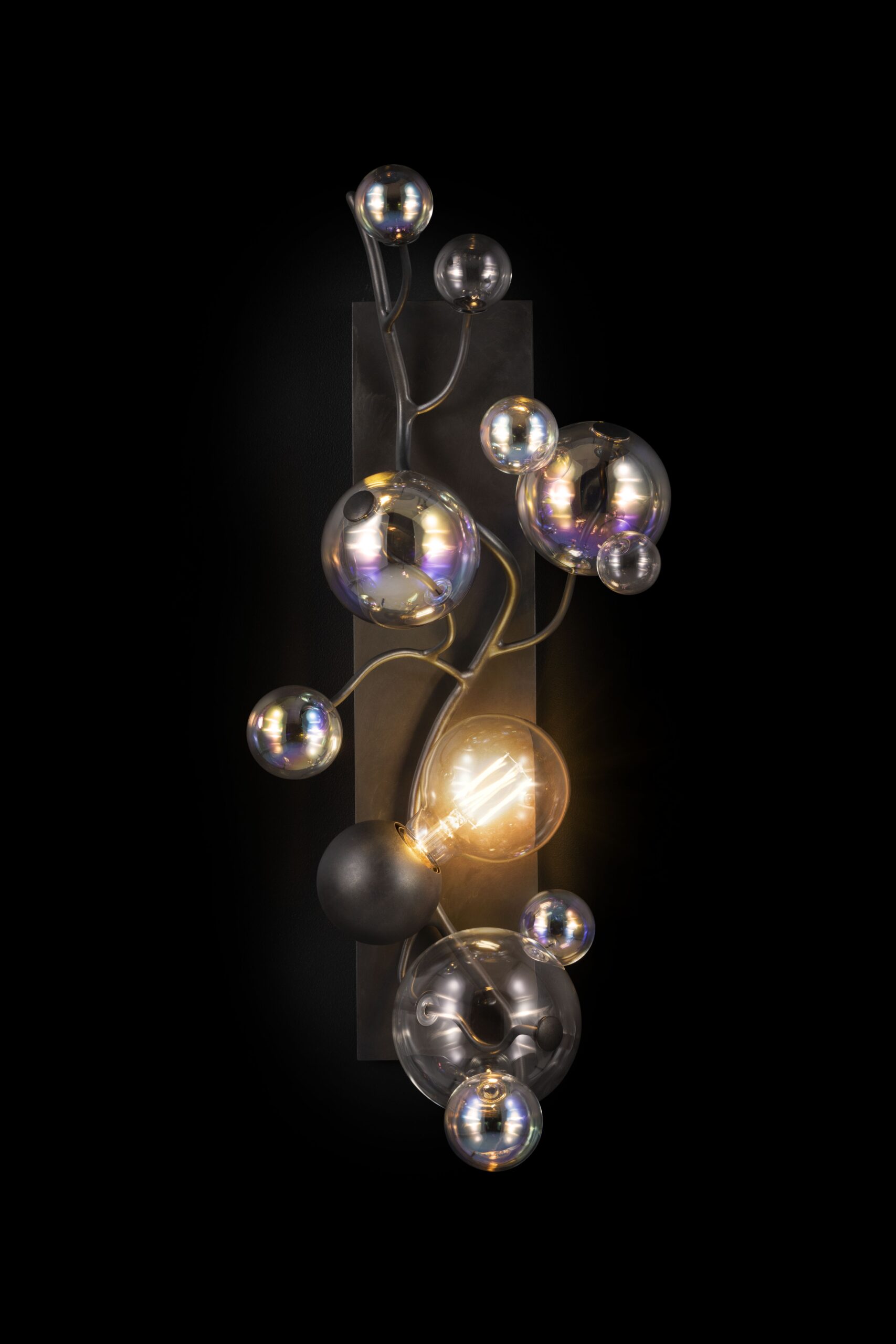 By default, the glass spheres used for the Bubbles Flow collection are predominantly iridescent, mixed with clear. The standard light bulbs are: globe E27-L for 220-240V | E26-L for 110-120V versions.