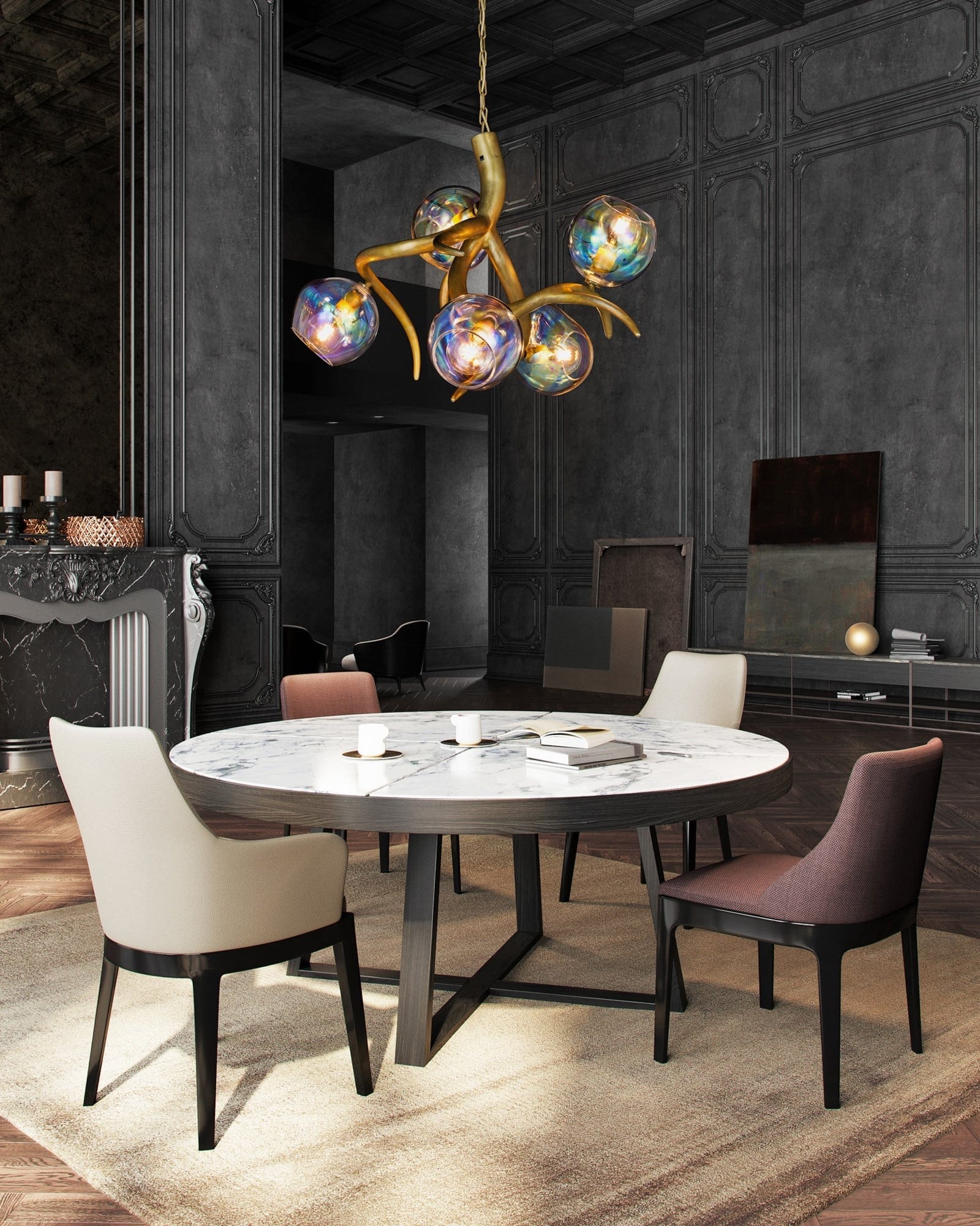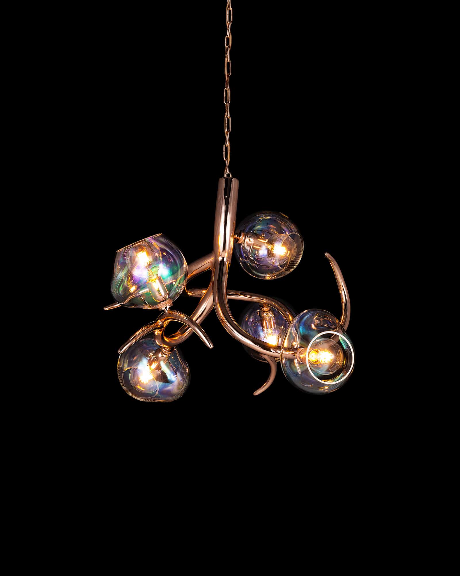 | ERSAC80BLM-GLIRI | Ø80xH.55 cm | 5x E27 | 15 kg | black matt - glass sphere iridescent | |