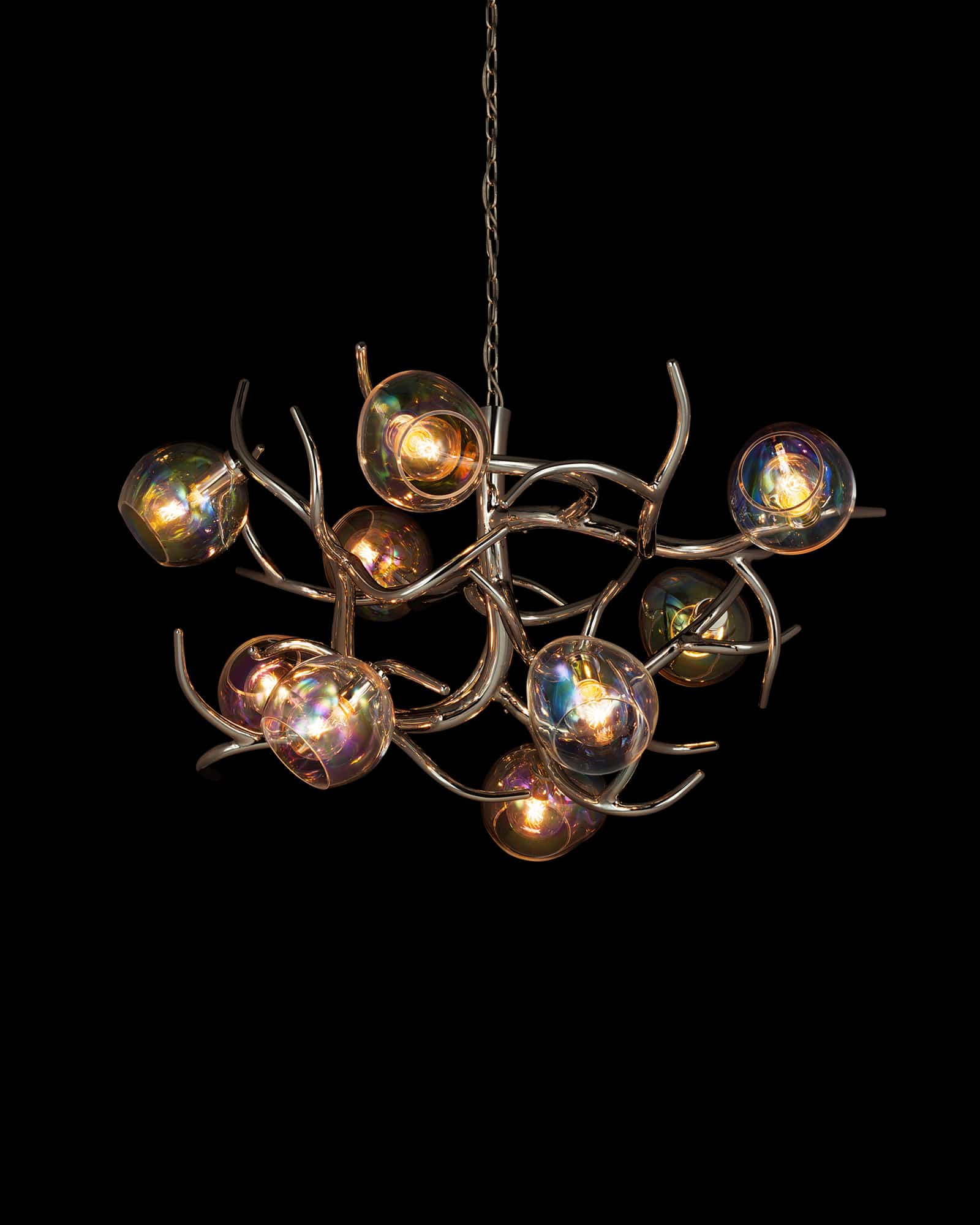 | ERSAC120NAW-GLIRI | Ø120xH.55 cm | 10x E27 | 32 kg | nickel aged warm - glass sphere iridescent | |
