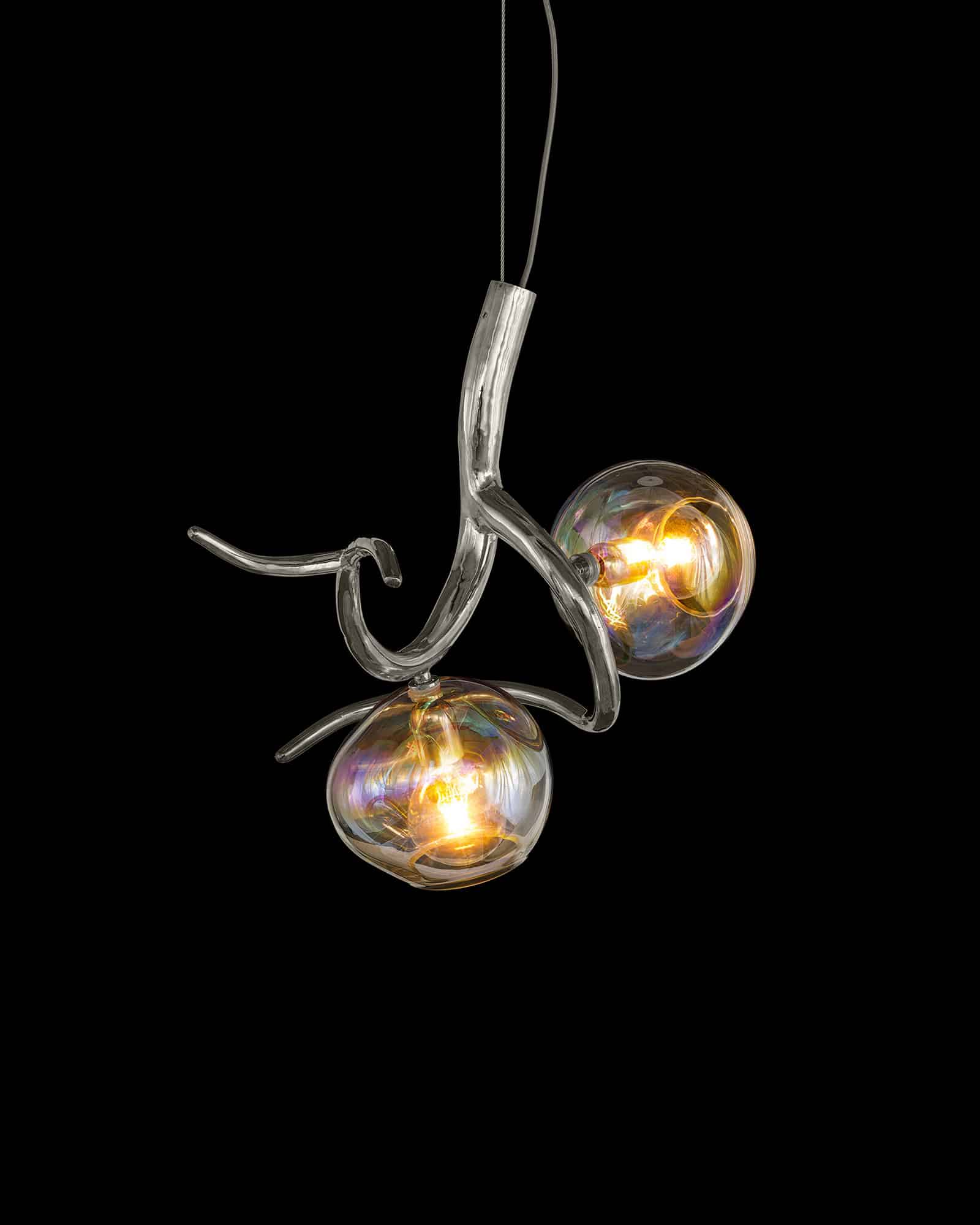| ERSA3N-GLIRI | L.65xH.60x D.55 cm | 3x E27 | 10 kg | nickel - glass sphere iridescent | |