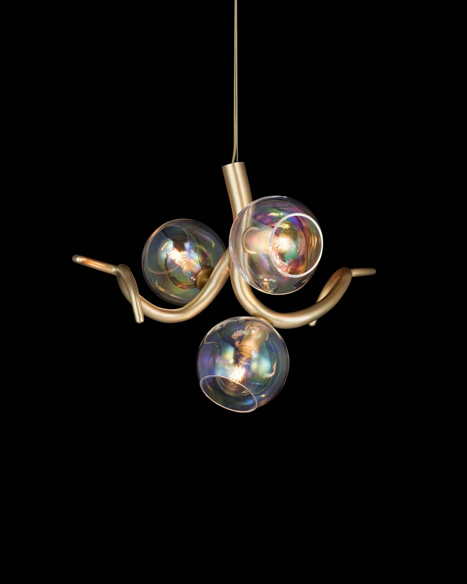 | ERSA3GSF-GLIRI | L.65xH.60x D.55 cm | 3x E27 | 10 kg | gold satin - glass sphere iridescent |