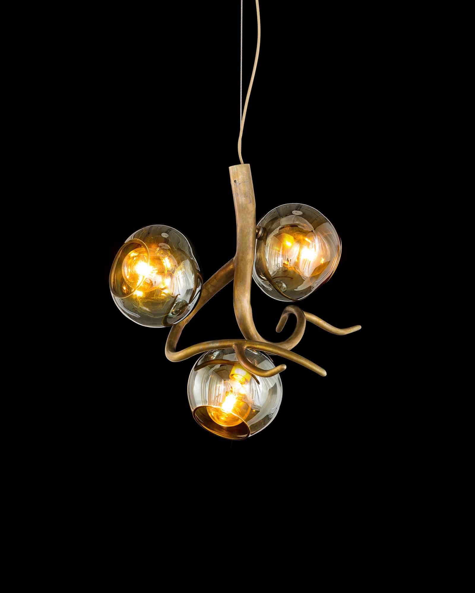 | ERSA3BRBUR-GLIRI | L.65xH.60x D.55 cm | 3x E27 | 10 kg | brass burnished - glass sphere iridescent | |