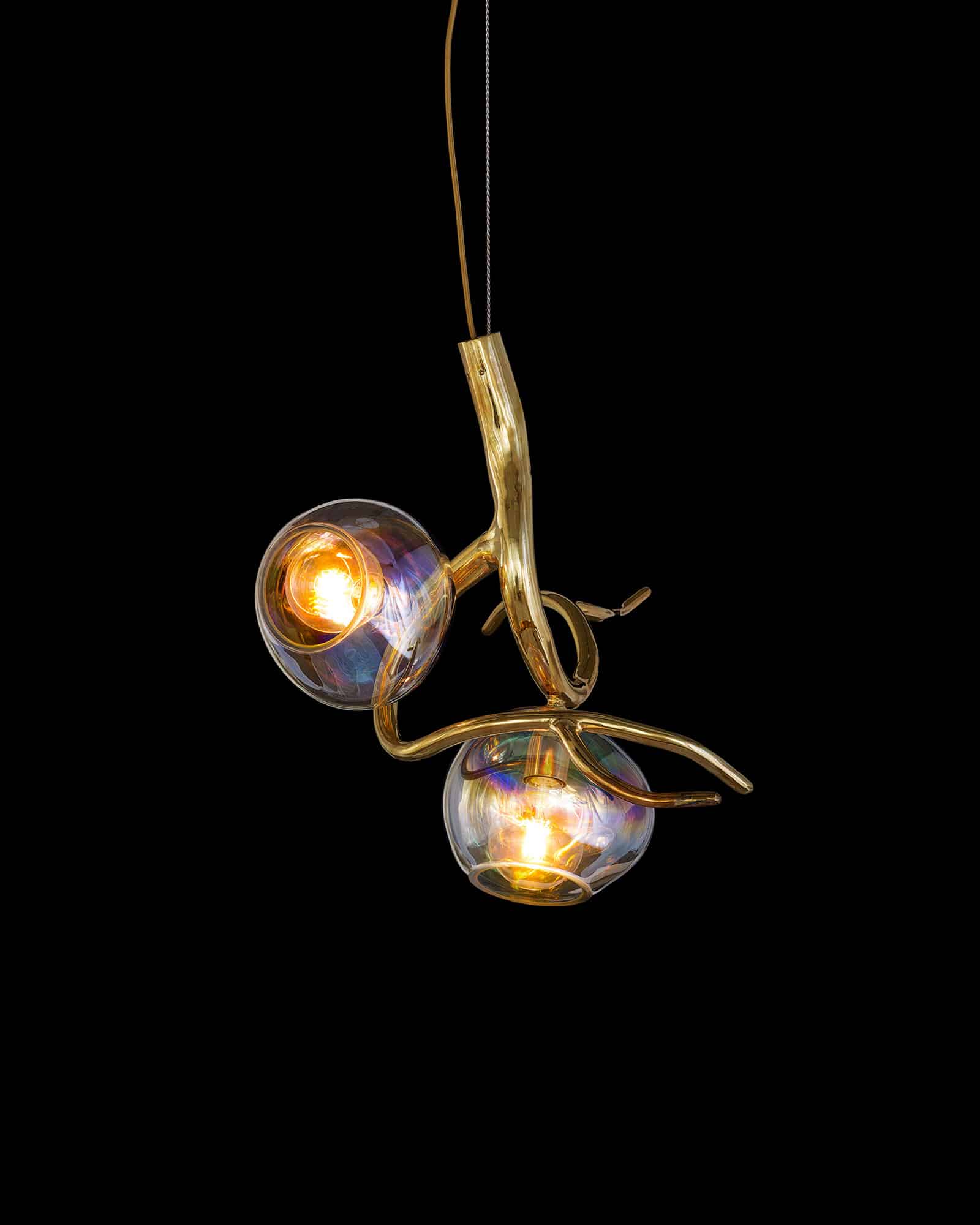 | ERSA2BRBUR-GLIRI | L.60xH.60x D.55 cm | 2x E27 | 8 kg | brass burnished - glass sphere iridescent | |