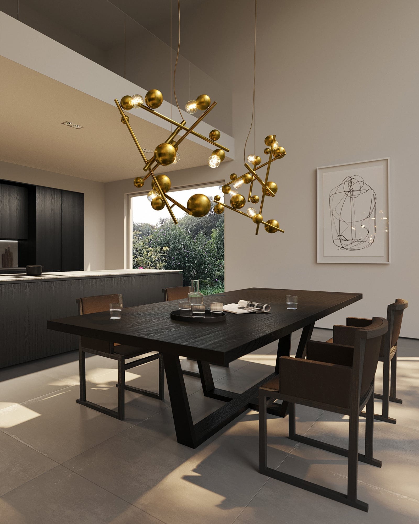 By default, the Galaxy will be delivered with the globes in the finish of the lamp. The globes can be produced in various finishes on request. The standard light bulbs are: globe E27-L for 220-240V | E26-L for 110-120V versions.