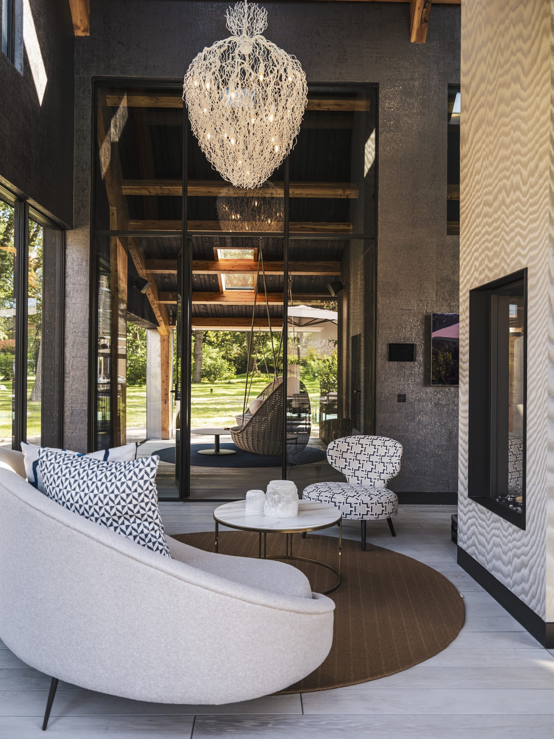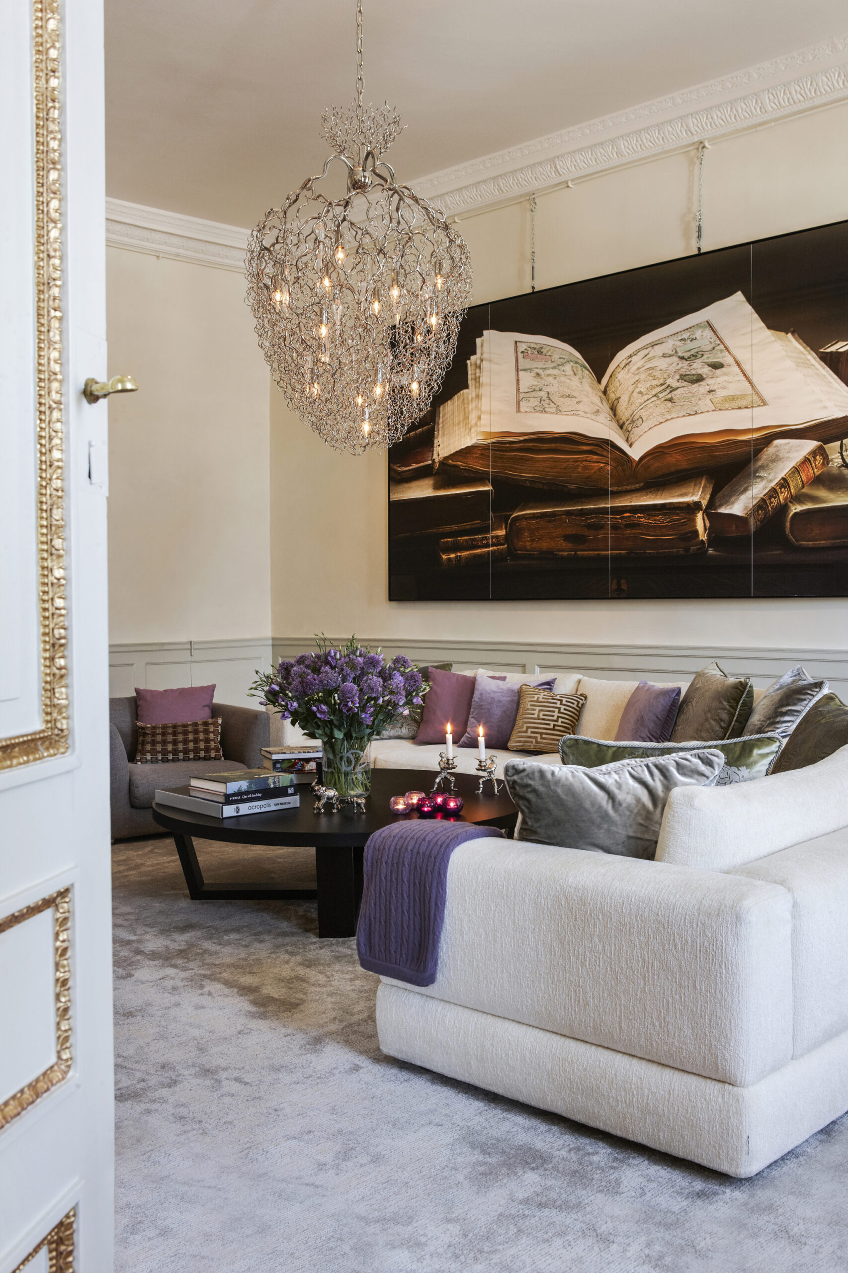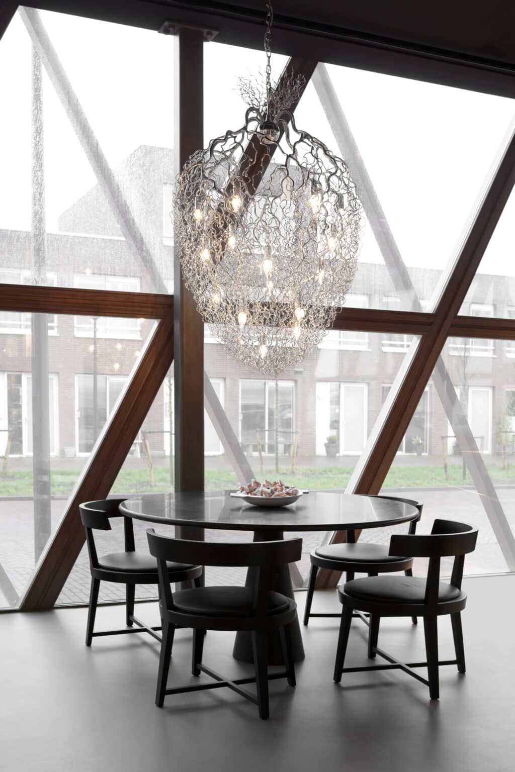 All chandeliers are supplied with a Ø12 cm (4.7 in) dome ceiling cover A-1, Ø16 cm (6.3 in) mounting plate, 170 cm (66.9 in) of chain, and 350 cm (137.8 in) of electrical cable to be woven into the chain. The total drop can be easily adjusted on-site.