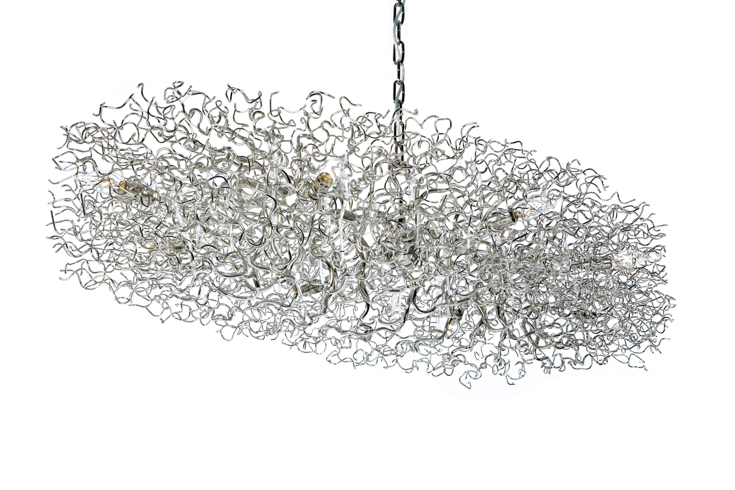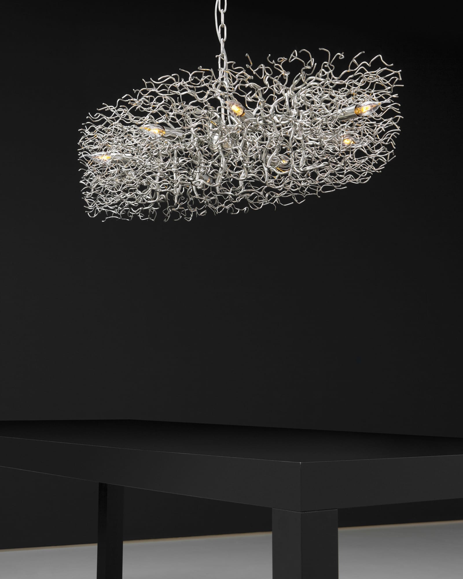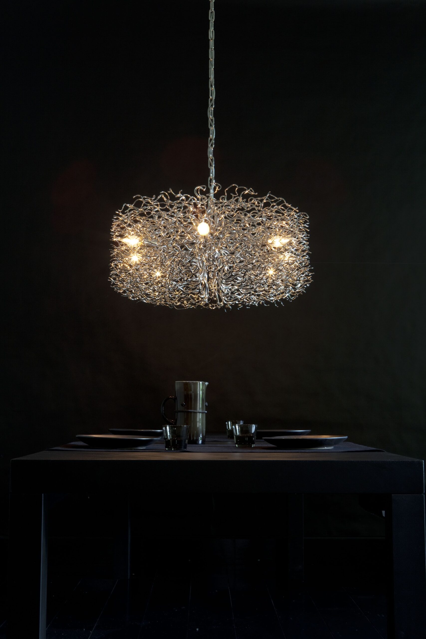 All chandeliers are supplied with a Ø12 cm (4.7 in) dome ceiling cover A-1, Ø16 cm (6.3 in) mounting plate, 170 cm (66.9 in) of chain, and 350 cm (137.8 in) of electrical cable to be woven into the chain. The total drop can be easily adjusted on-site.