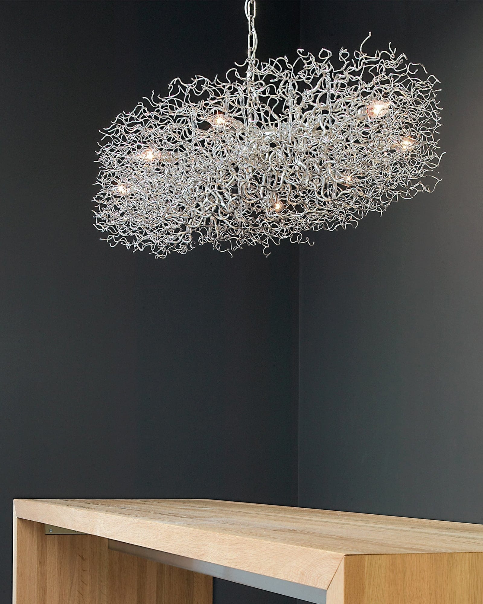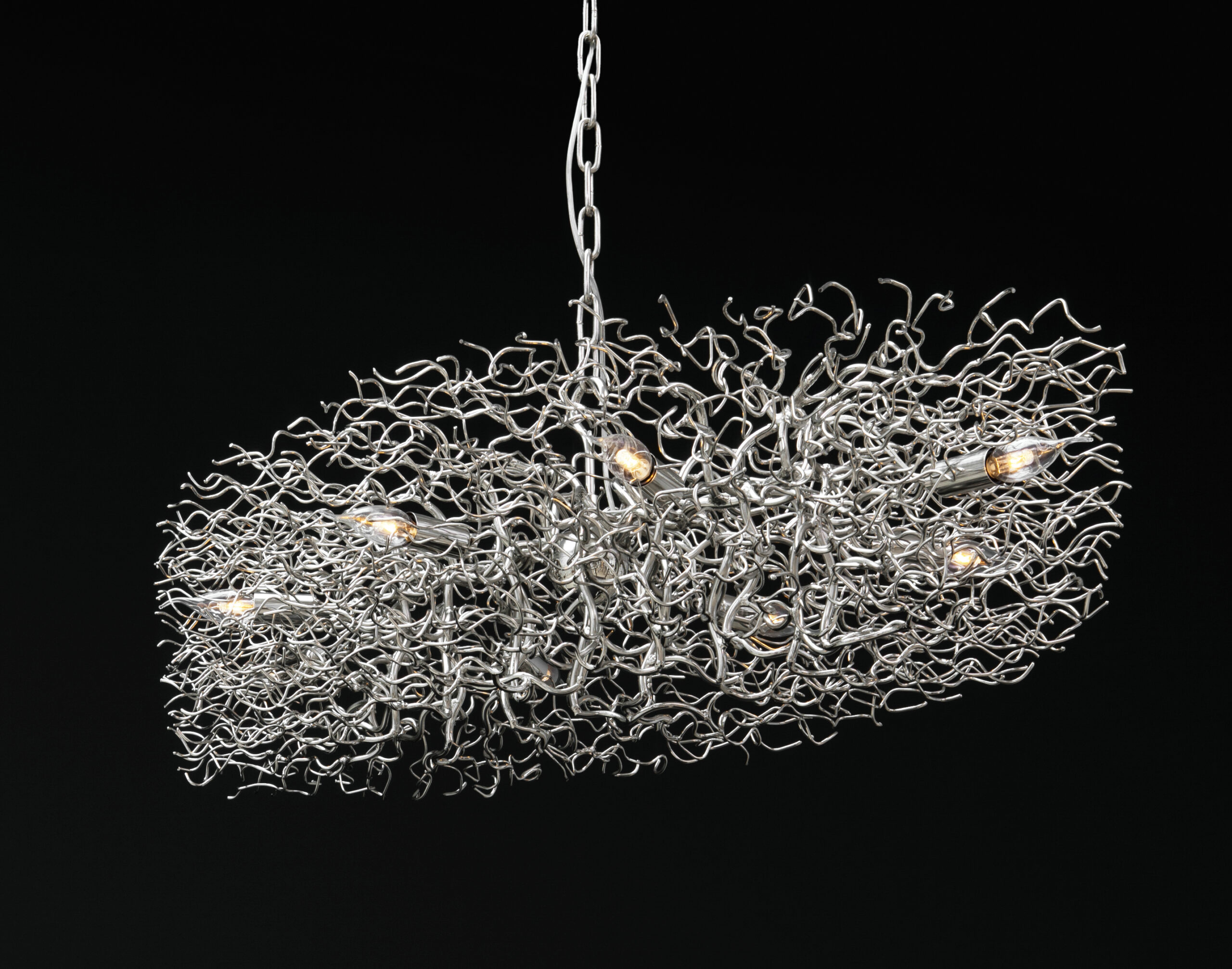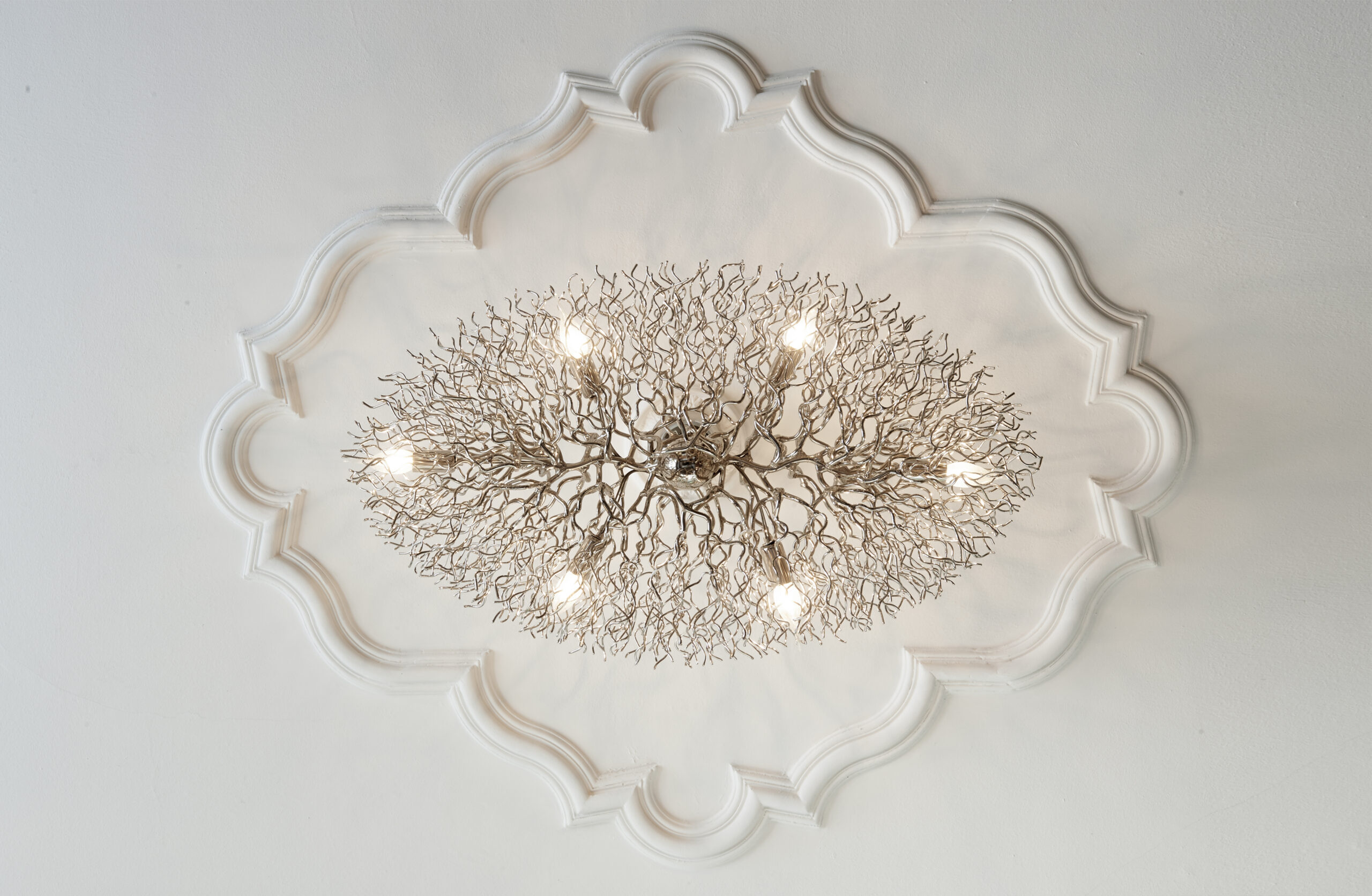 All chandeliers are supplied with a Ø12 cm (4.7 in) dome ceiling cover A-1, Ø16 cm (6.3 in) mounting plate, 170 cm (66.9 in) of chain, and 350 cm (137.8 in) of electrical cable to be woven into the chain. The total drop can be easily adjusted on-site.