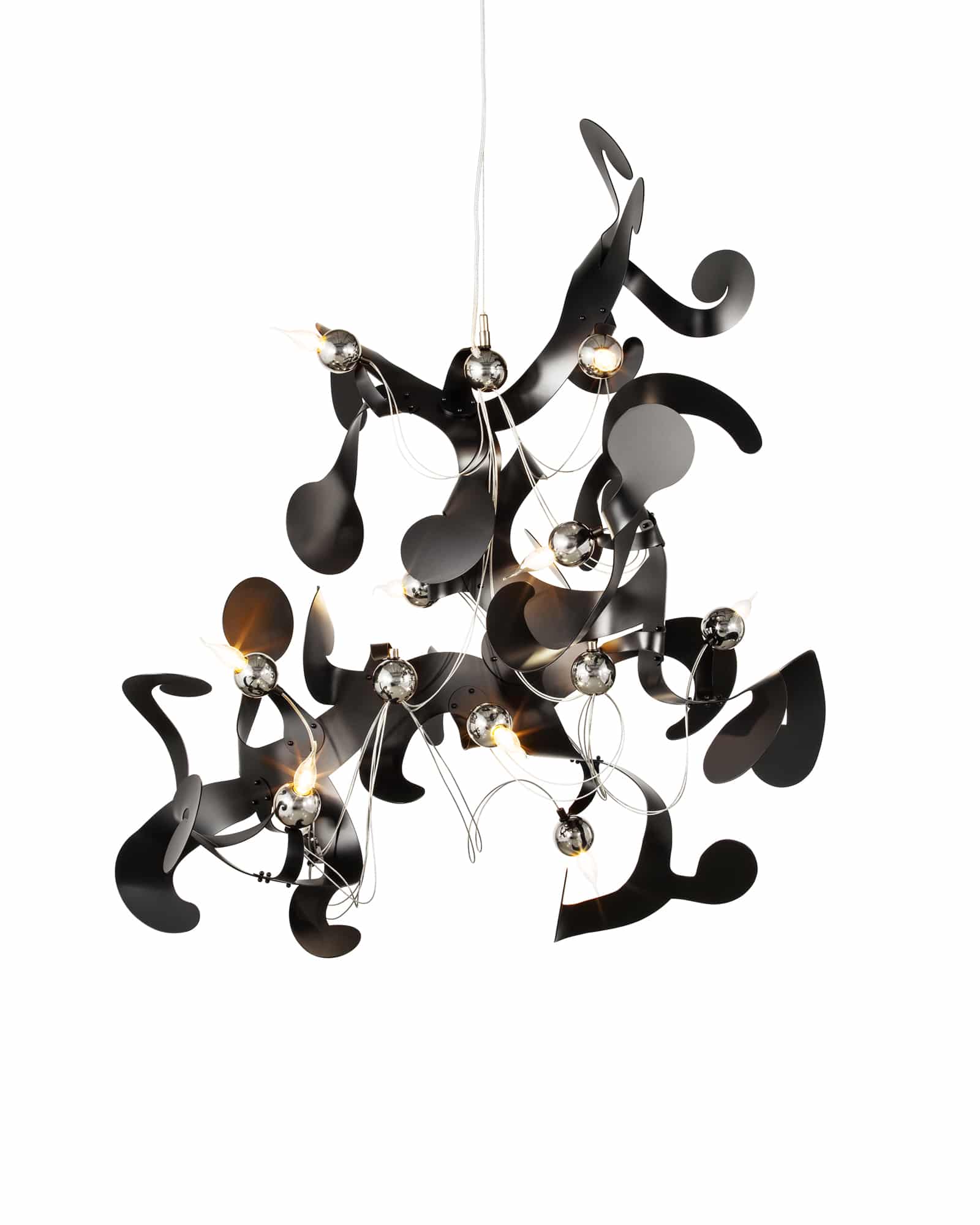 As standard, the Kelp is supplied with globes in the same finish as the Lamp. The globes can be supplied in different finishes on request. The standard light bulbs are: candle E14-C for 220-240V | E12-C for 110-120V versions.
