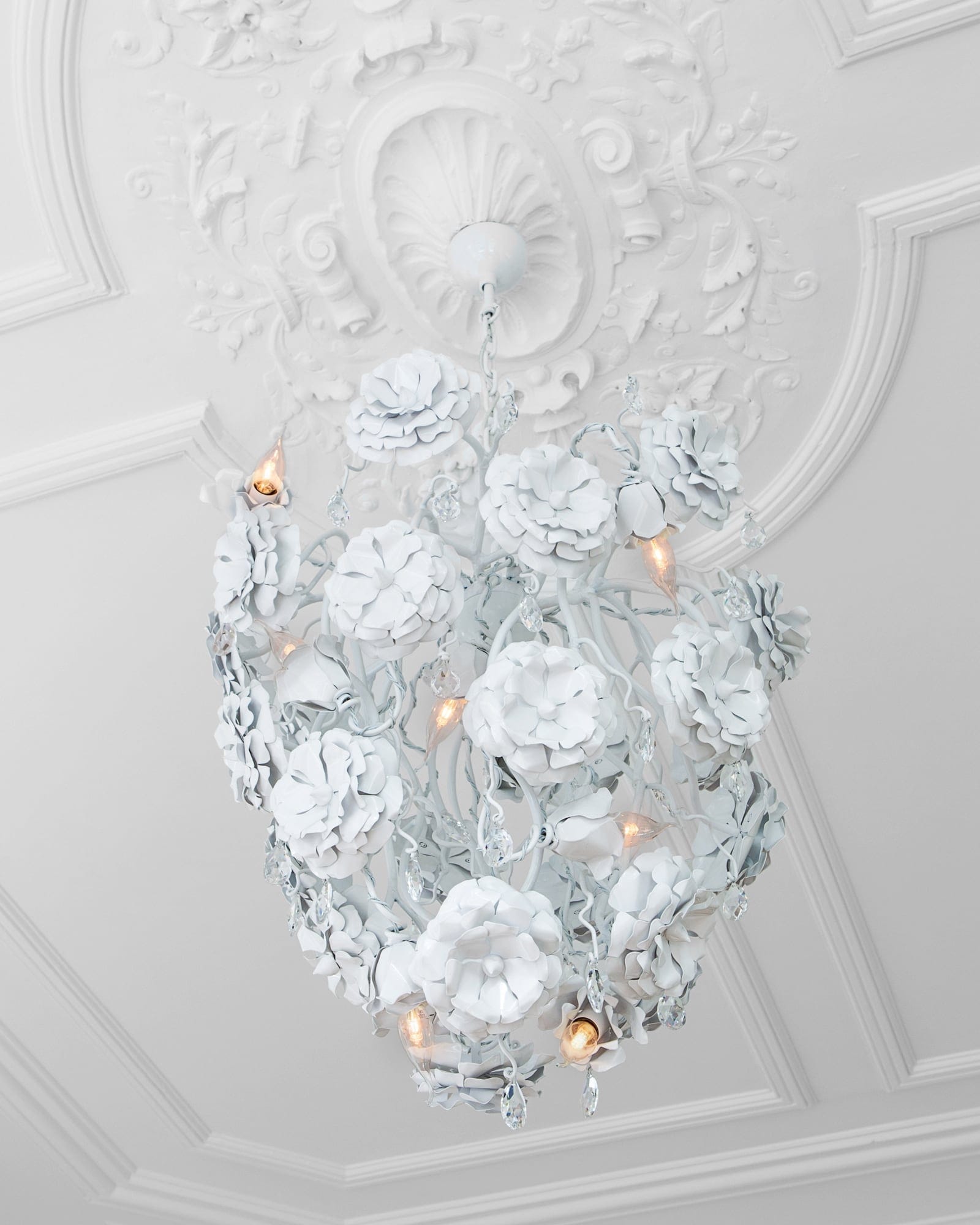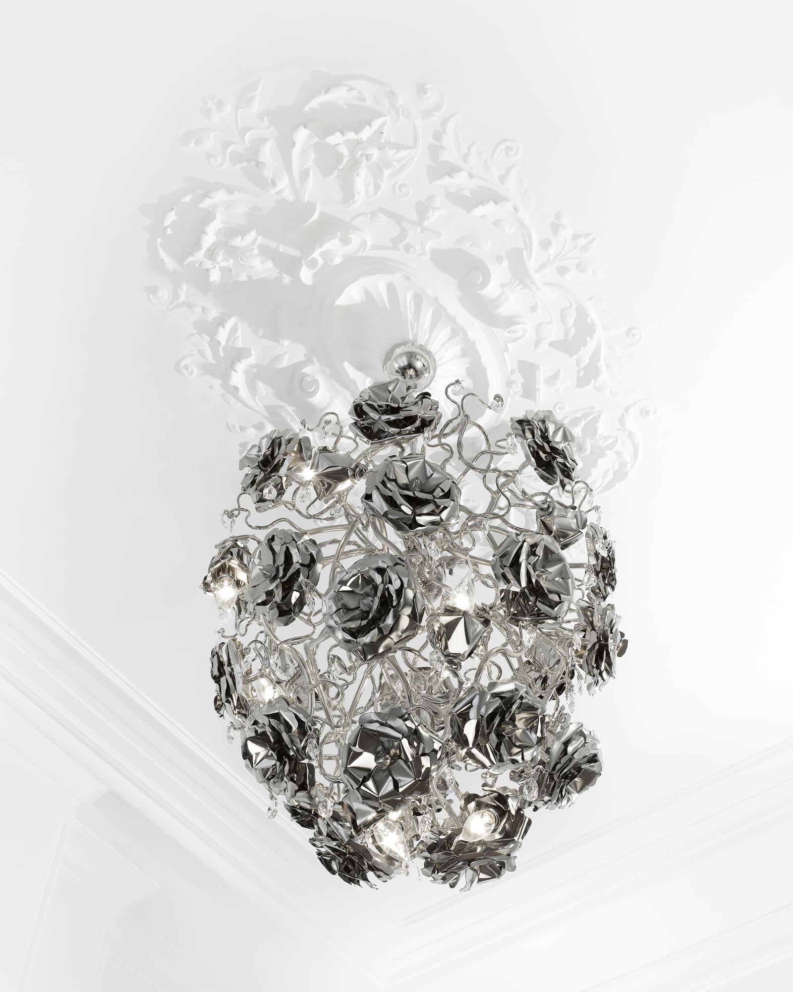 All chandeliers are supplied with a Ø12 cm (4.7 in) dome ceiling cover A-1, Ø16 cm (6.3 in) mounting plate, 170 cm (66.9 in) of chain, and 350 cm (137.8 in) of electrical cable to be woven into the chain. The total drop can be easily adjusted on-site.