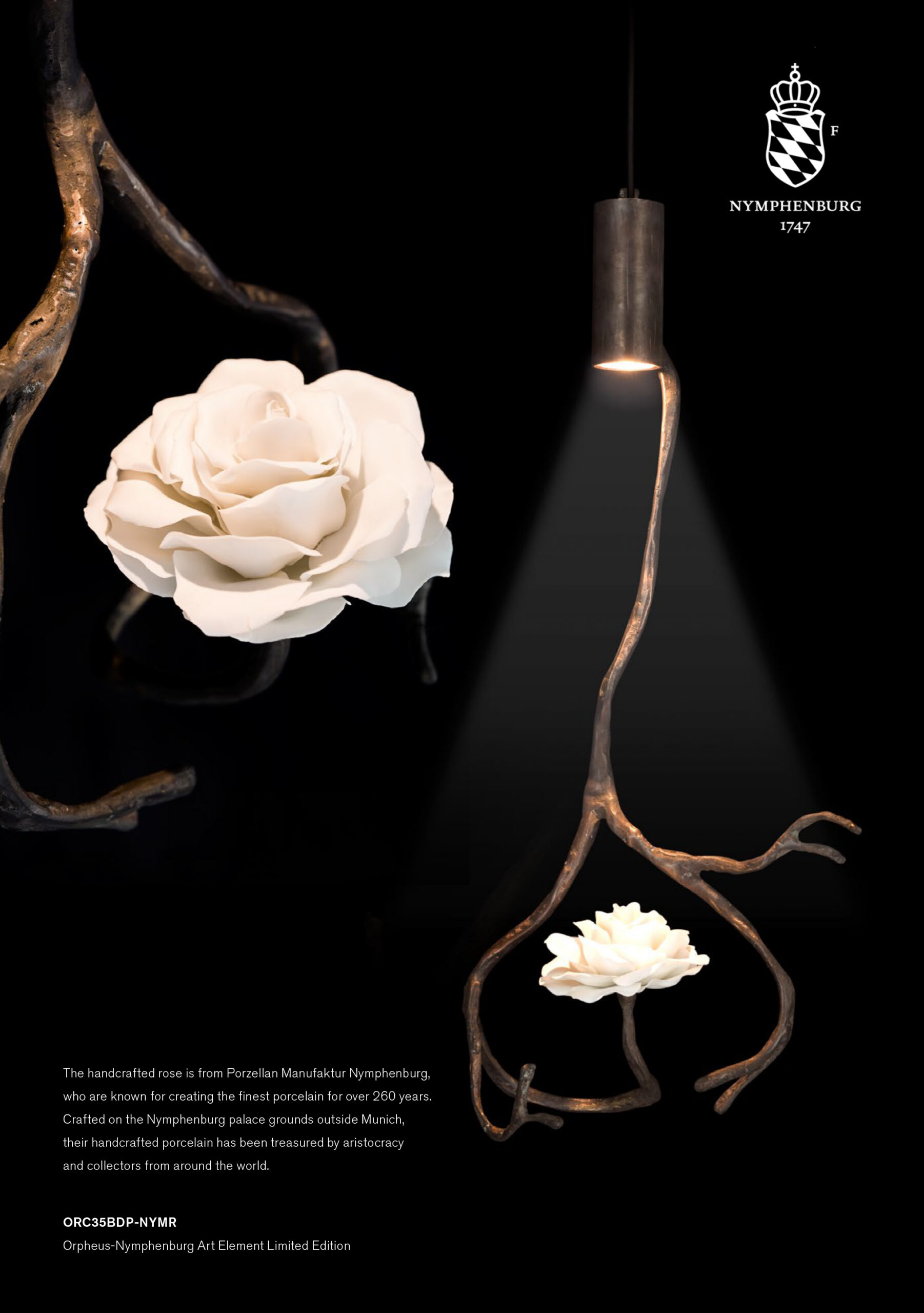 | ORC35BDP-NYMR-L | Ø35xH.80 cm | 1x GU10 | 5 kg | bronze dark patina with Nymphenburg rose - LIMITED EDITION | |