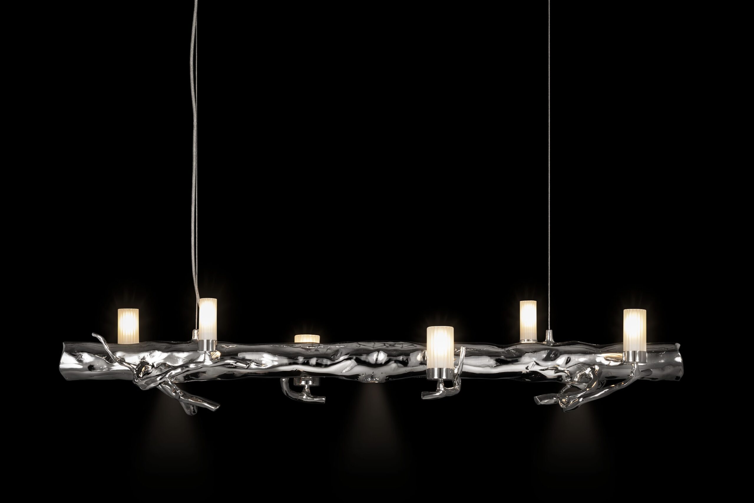 All long lamps are supplied with Ø12 cm (4.7 in) and Ø2 cm (0.8 in) ceiling covers HL-1, 250 cm (98.4 in) of double steel cable, and 350 cm (137.8 in) of electric cable. The total drop can be easily adjusted on-site.