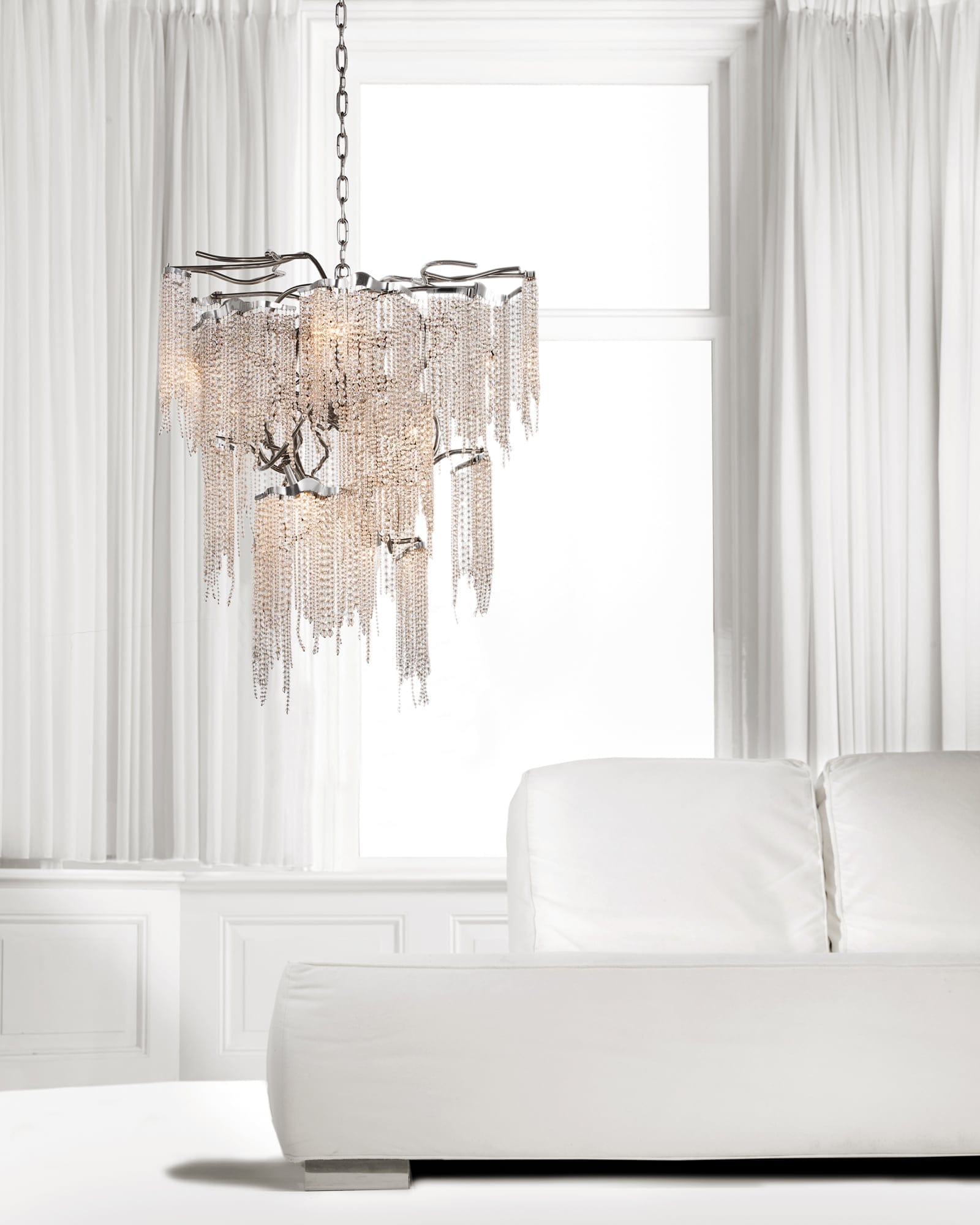 All chandeliers are supplied with a Ø12 cm (4.7 in) diameter dome ceiling cover, Ø16 cm (6.3 in) mounting plate, 170 cm (66.9 in) of chain, and 350 cm (137.8 in) of electrical cable to be woven into the chain. The total drop can be easily adjusted on-site.