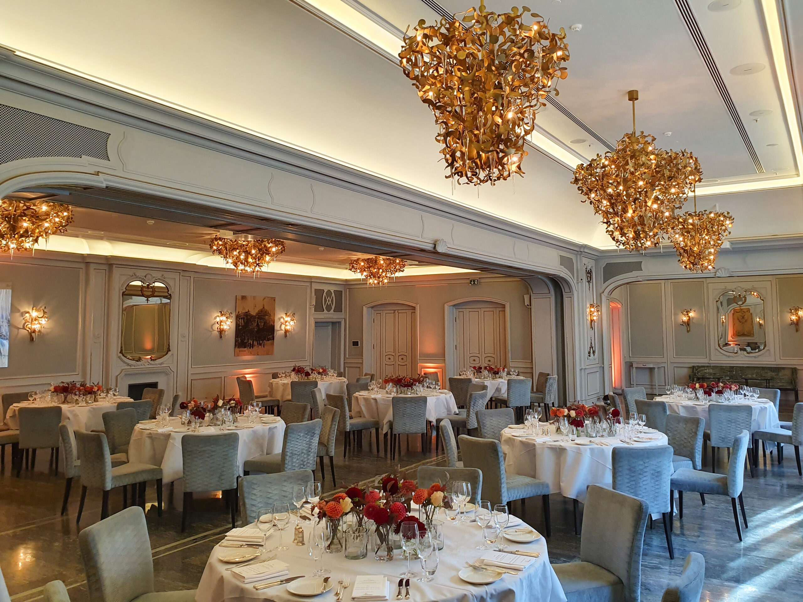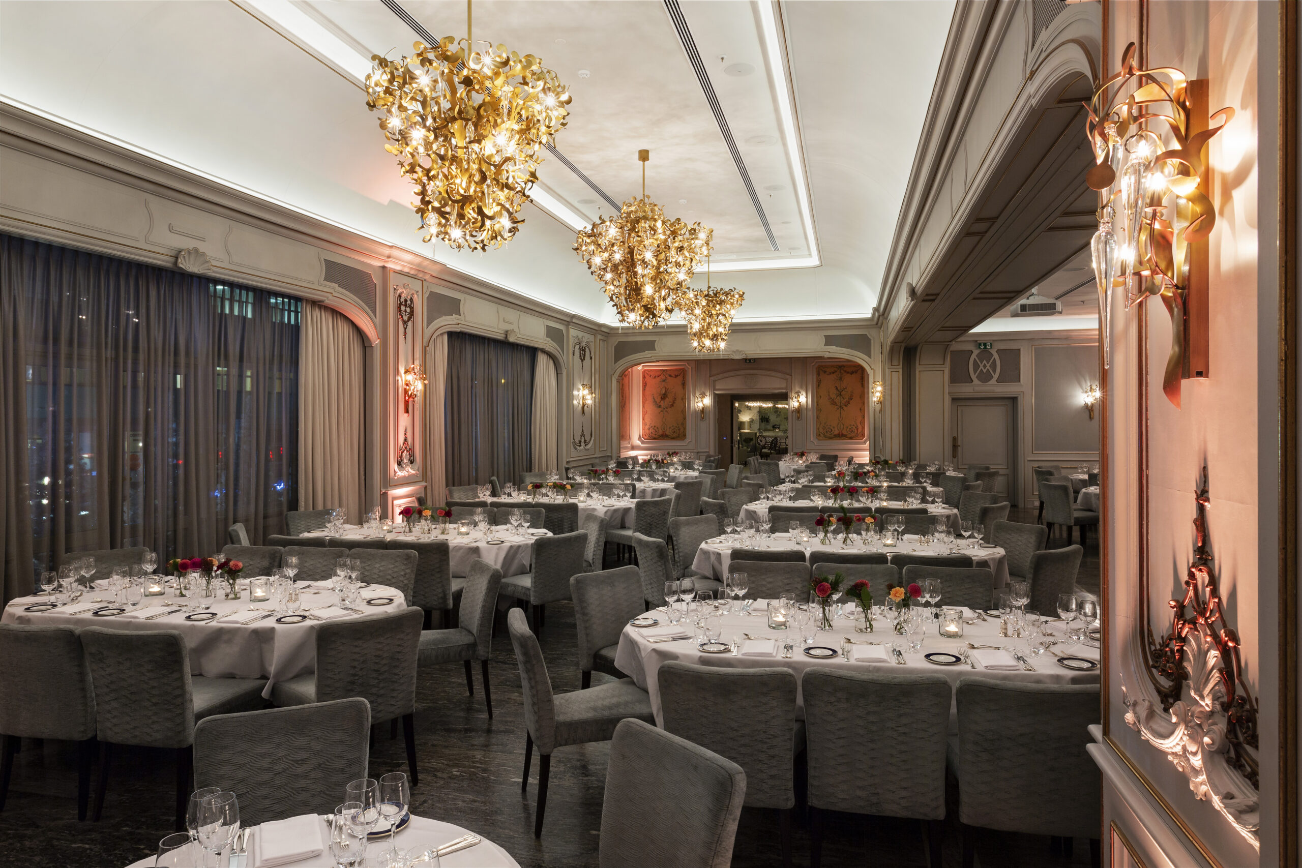 Dating back to 1900, the hotel’s history is connected with the nation’s most prestigious Theatre next door, and its restaurant is still seen as one of the best in town. Within this prestigious context, Brand van Egmond was asked to create the lighting throughout the restaurant, from the grand chandeliers to the wall lights, to strike a balance between the old-world charm and needs for modern lighting.